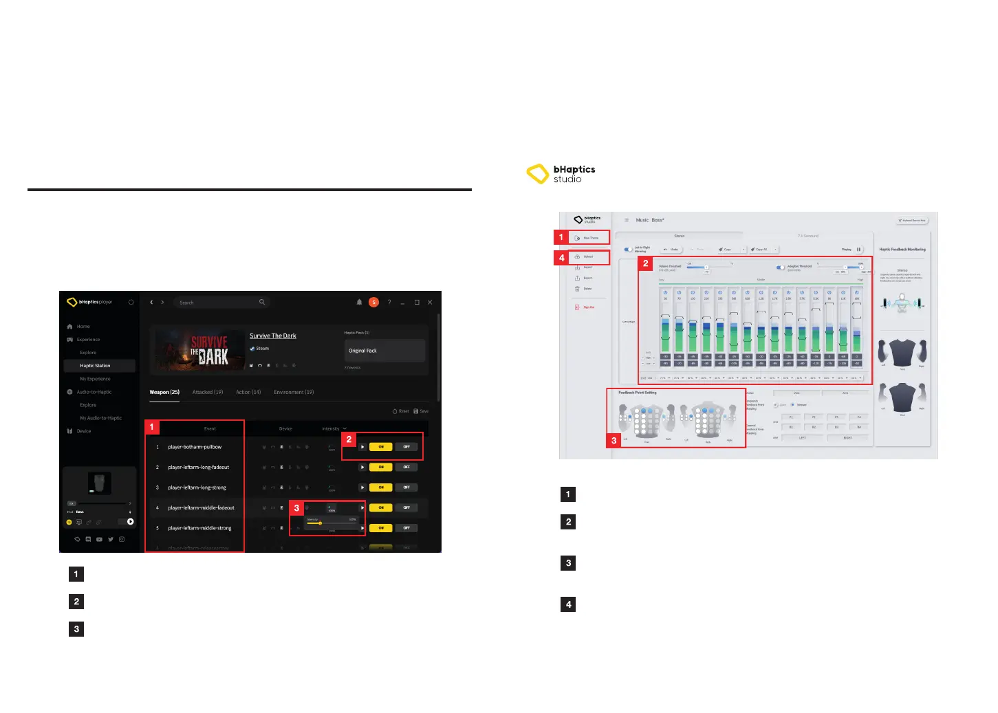 Using bHaptics Studio, you can create or edit Audio-to-Haptic profiles for optimized AtH