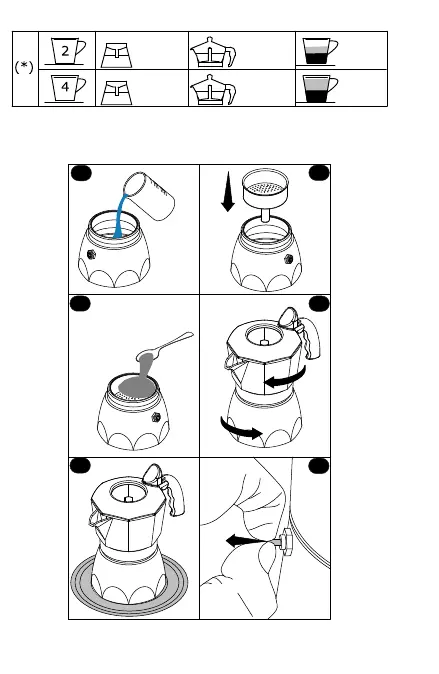 5. Mettete la caff ettiera sulla fonte di calore; se si tratta di fi amma