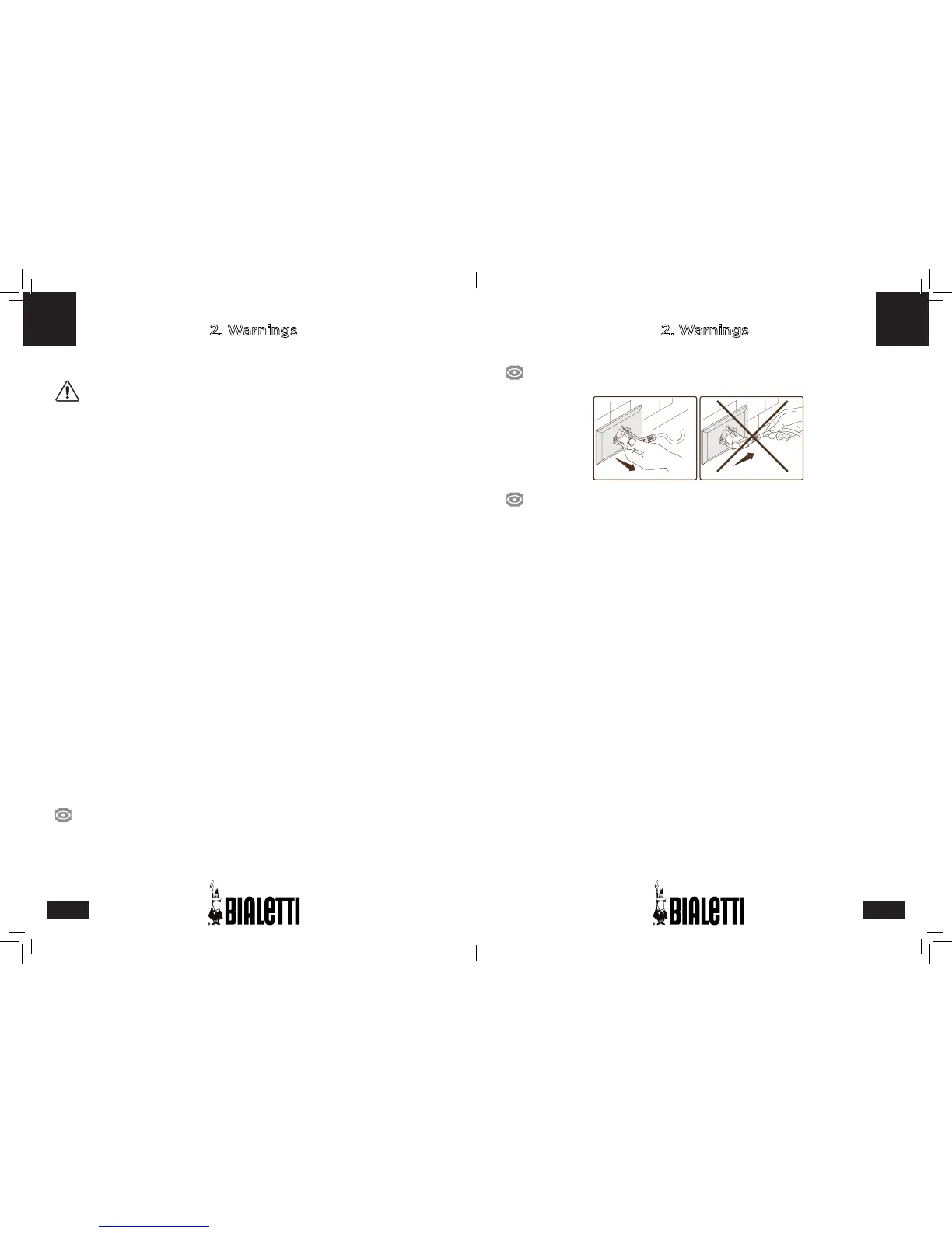 • Do not pull on the electrical cord or the appliance to pull the plug out of the