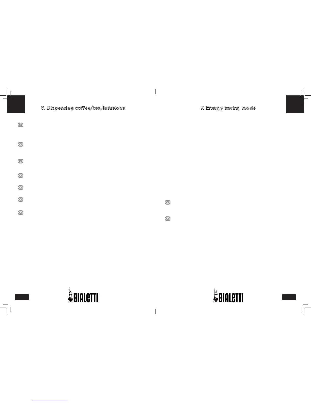 6. Dispensing coee/tea/infusions 7. Energy saving mode