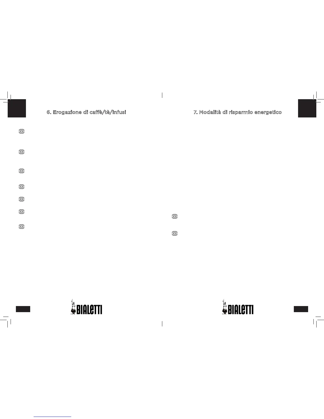 6. Erogazione di caè/tè/infusi 7. Modalità di risparmio energetico