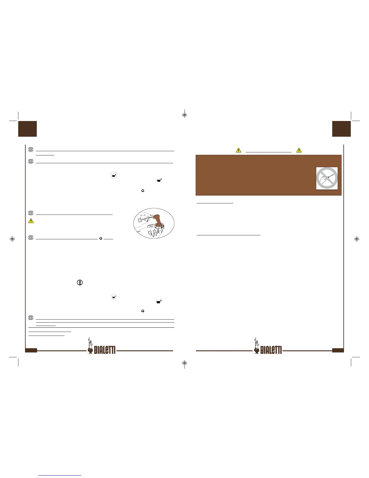 Na het uitschenken van de espresso, verwijder de koffi epoeder uit het fi lter (12 of 13) speol het goed af