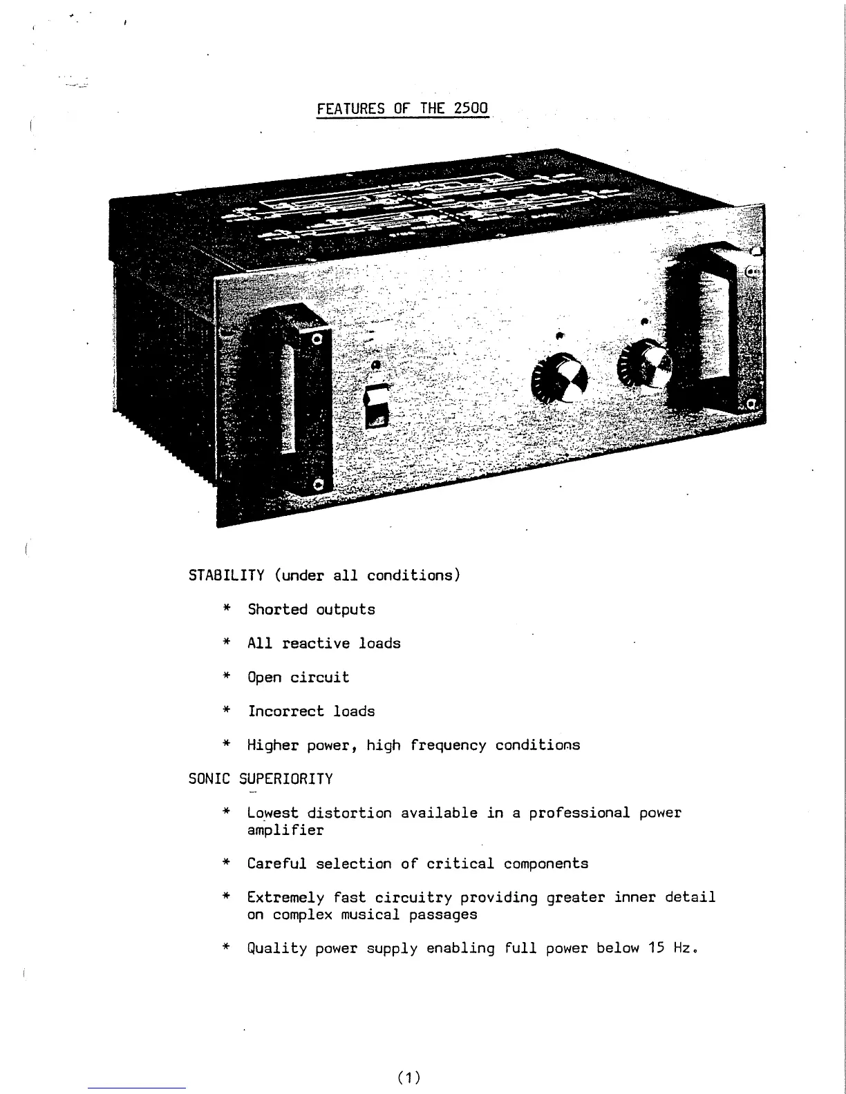 Biamp 2500 - Features of the 2500; Stability Under All Conditions; Sonic Superiority
