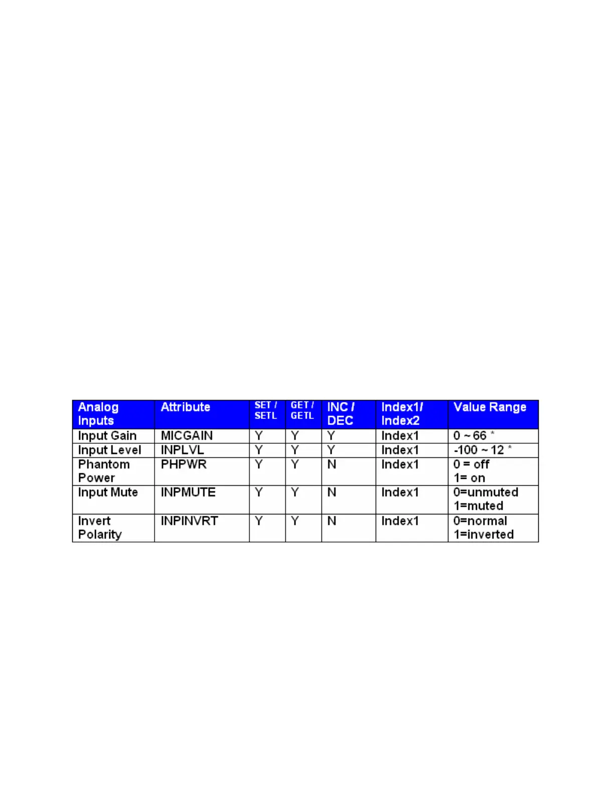 Commands, as well as the Value range that the Attribute will accept. Index1/Index2 determines whether
