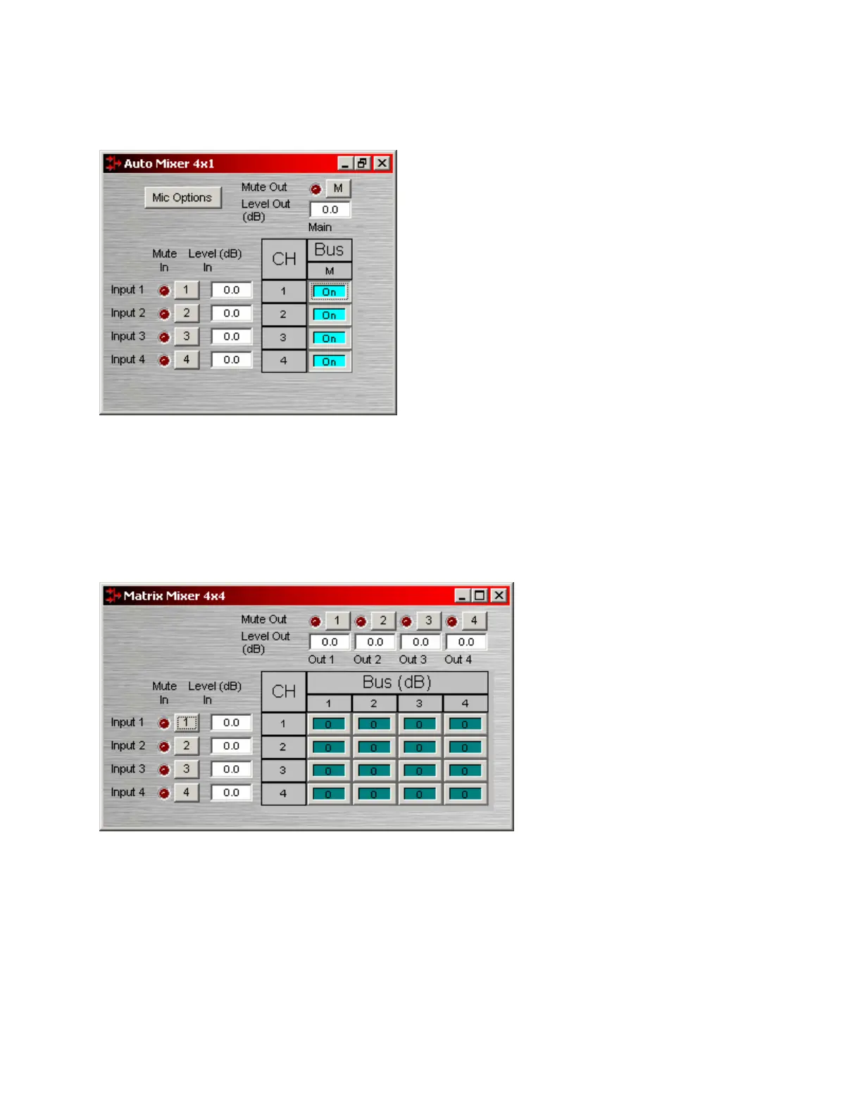 In an Automatic mixer on device 2 we are decreasing the level of output 1 on instance ID 6 by 2dB. Index2