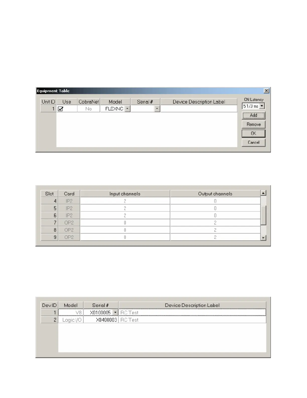 when connected to a system, at which time the Equipment Table becomes 'read-only' information. CN