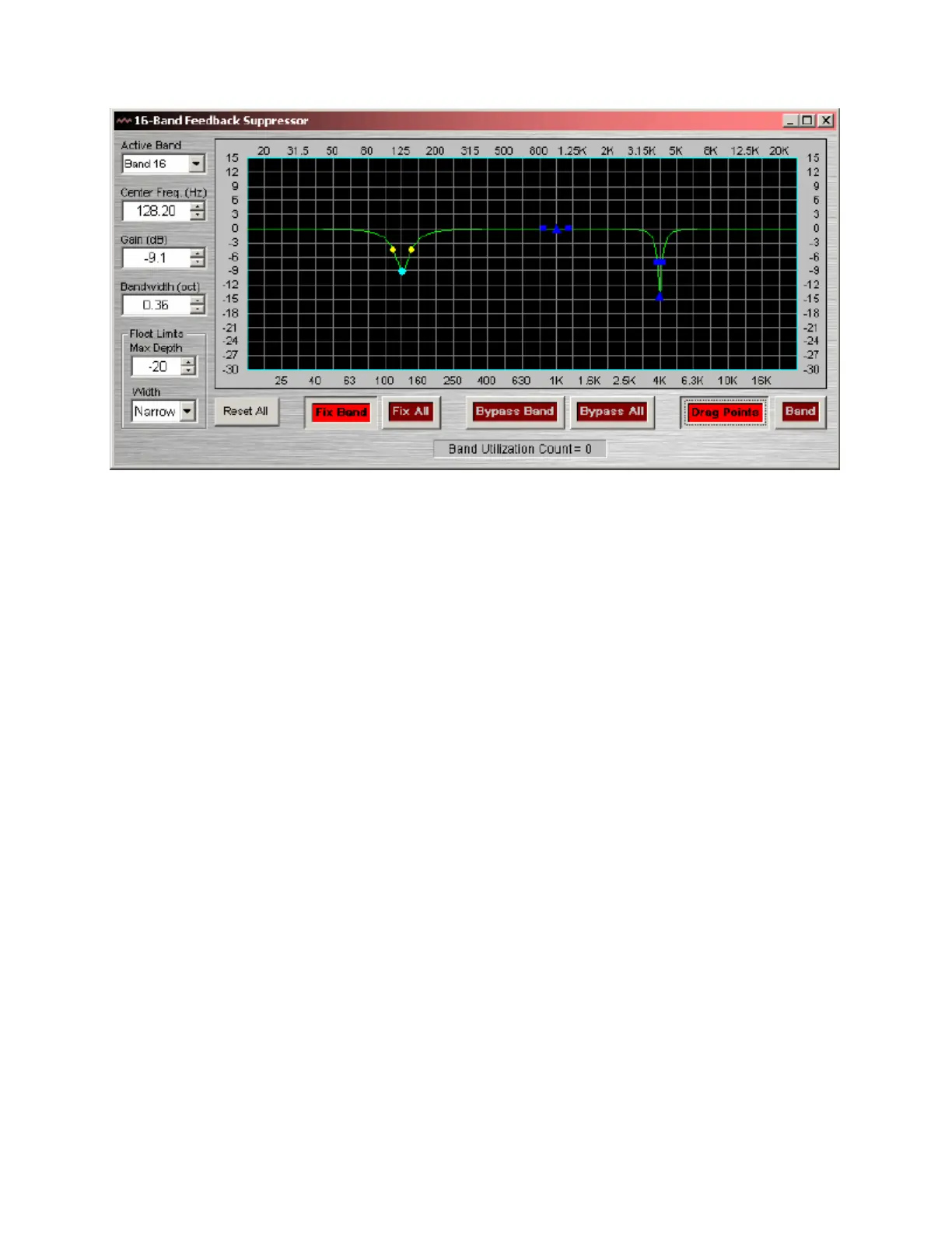floating). Bypass Band & Bypass All disable the band(s) without changing settings. Drag Points turns