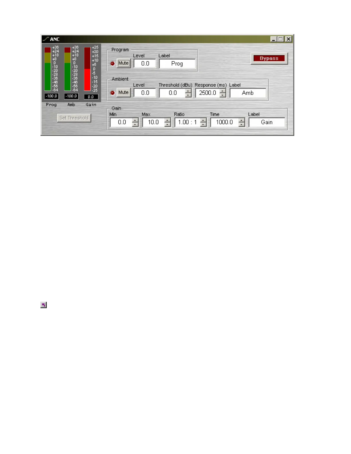 compensation being applied. Bypass disables the Ambient Noise Compensator without changing settings.