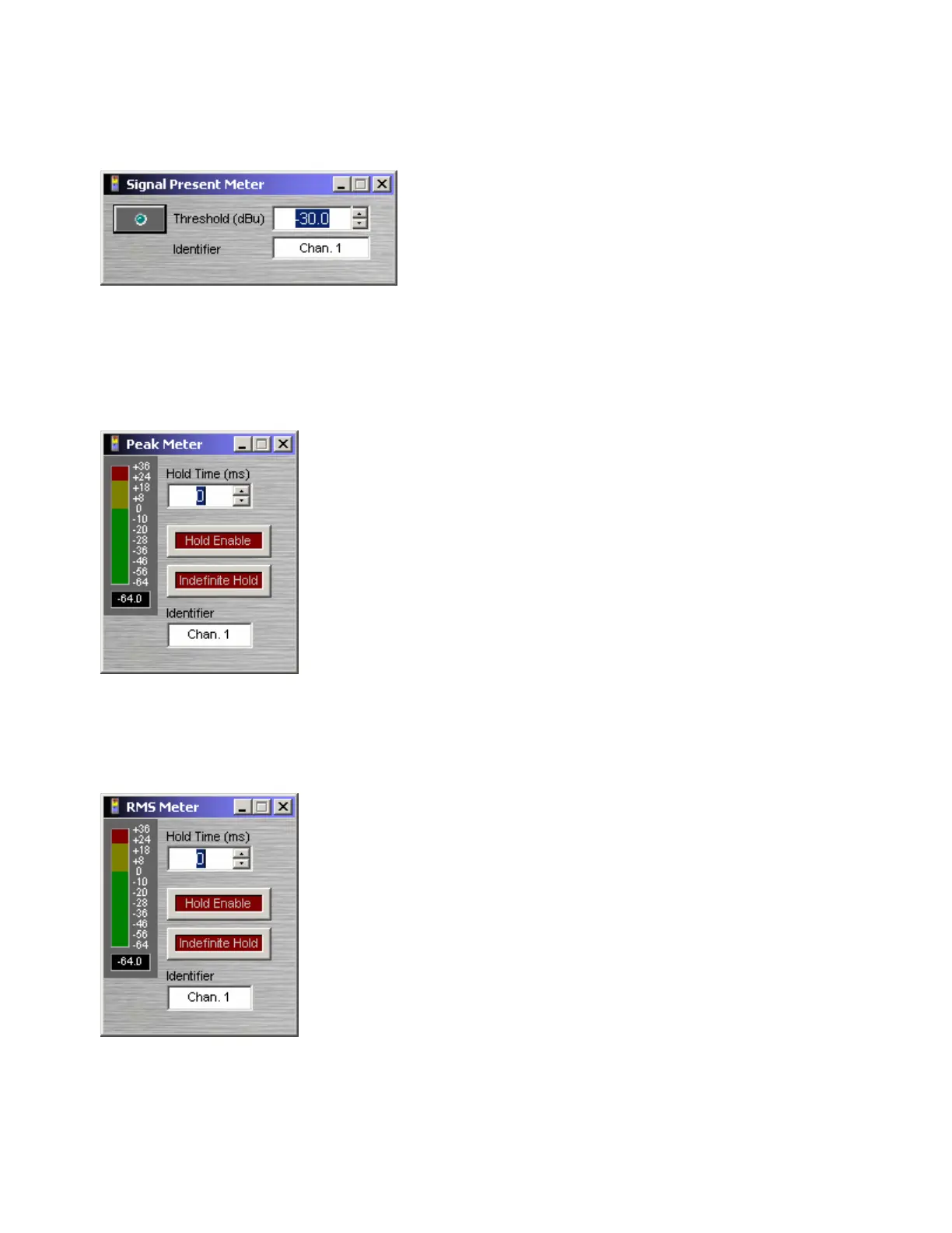 A peak-reading meter & numeric display indicate signal level. Hold Time
