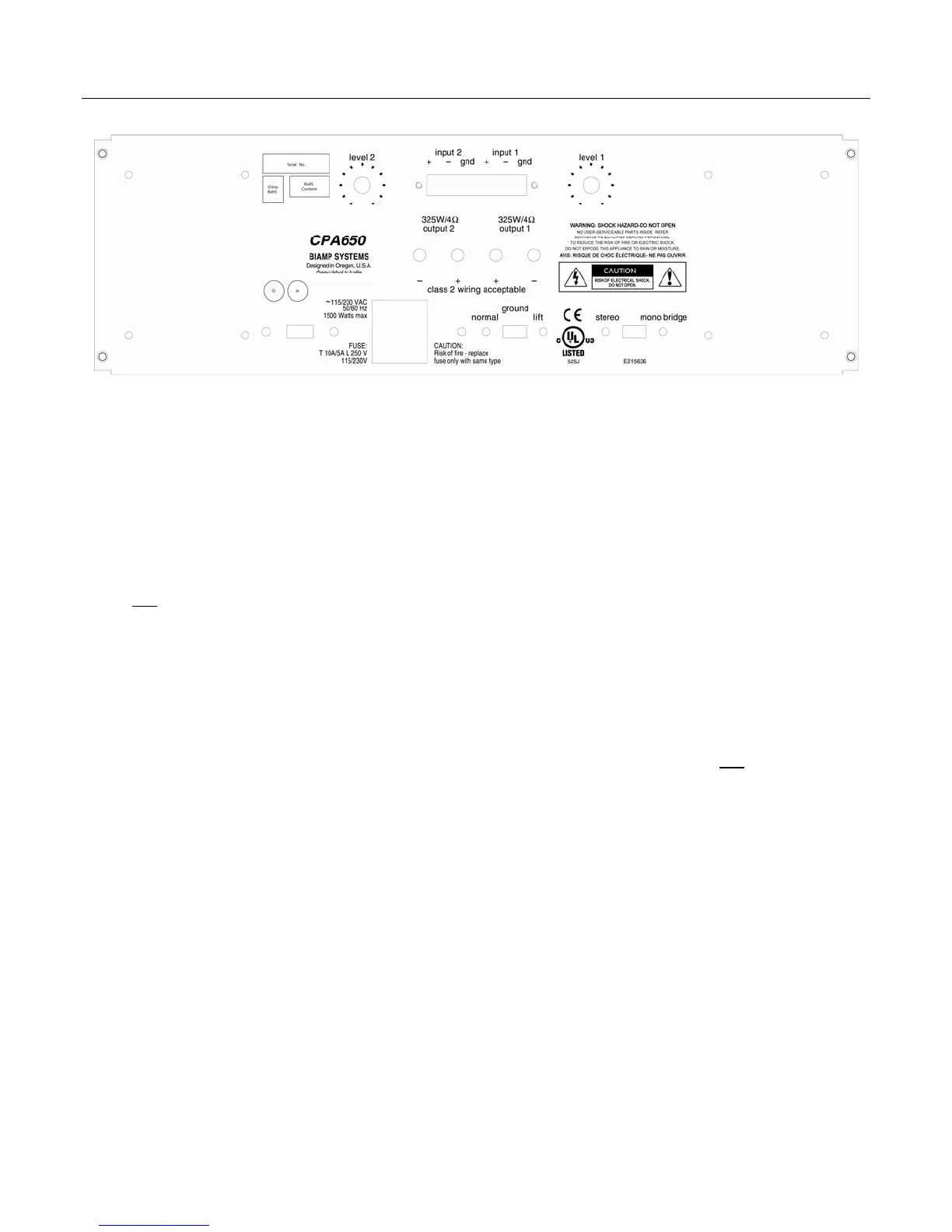 becomes the active input and Channel 2 input is inactive. As an option, the Channel Level Controls may be mounted to the CPA650 front