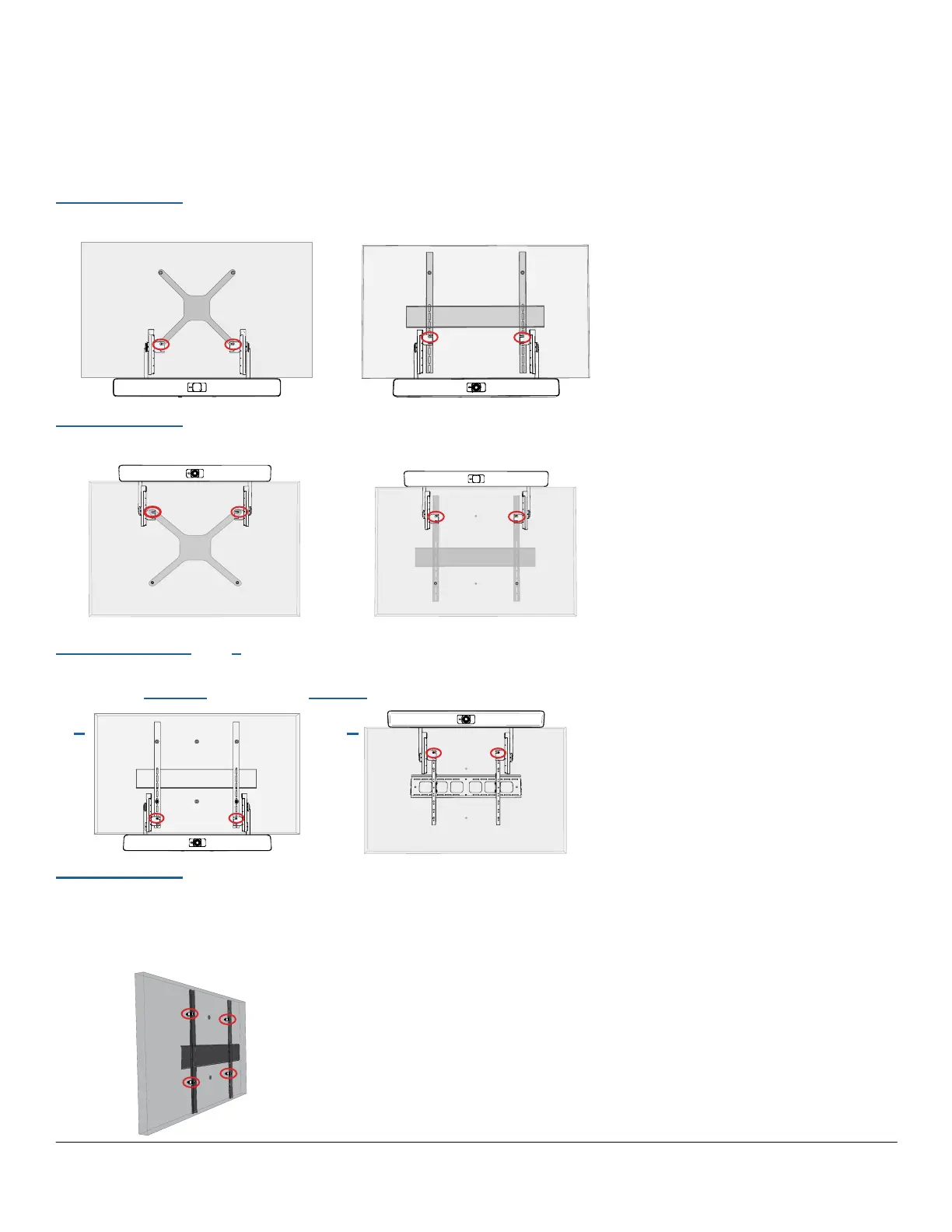 Mount Bar ABOVE the TV using the circled VESA mounting holes (pgs 8-12).