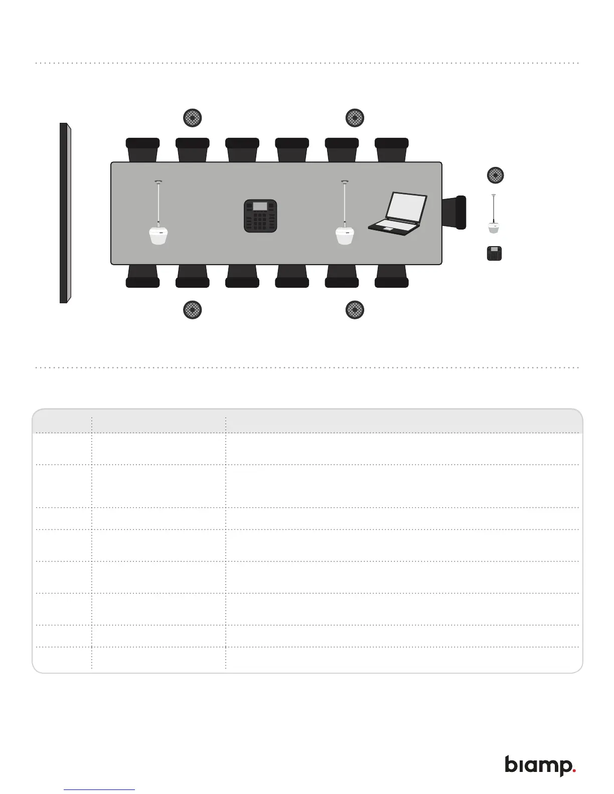 Actively tracks and intelligently mixes conversations from around the table. Each