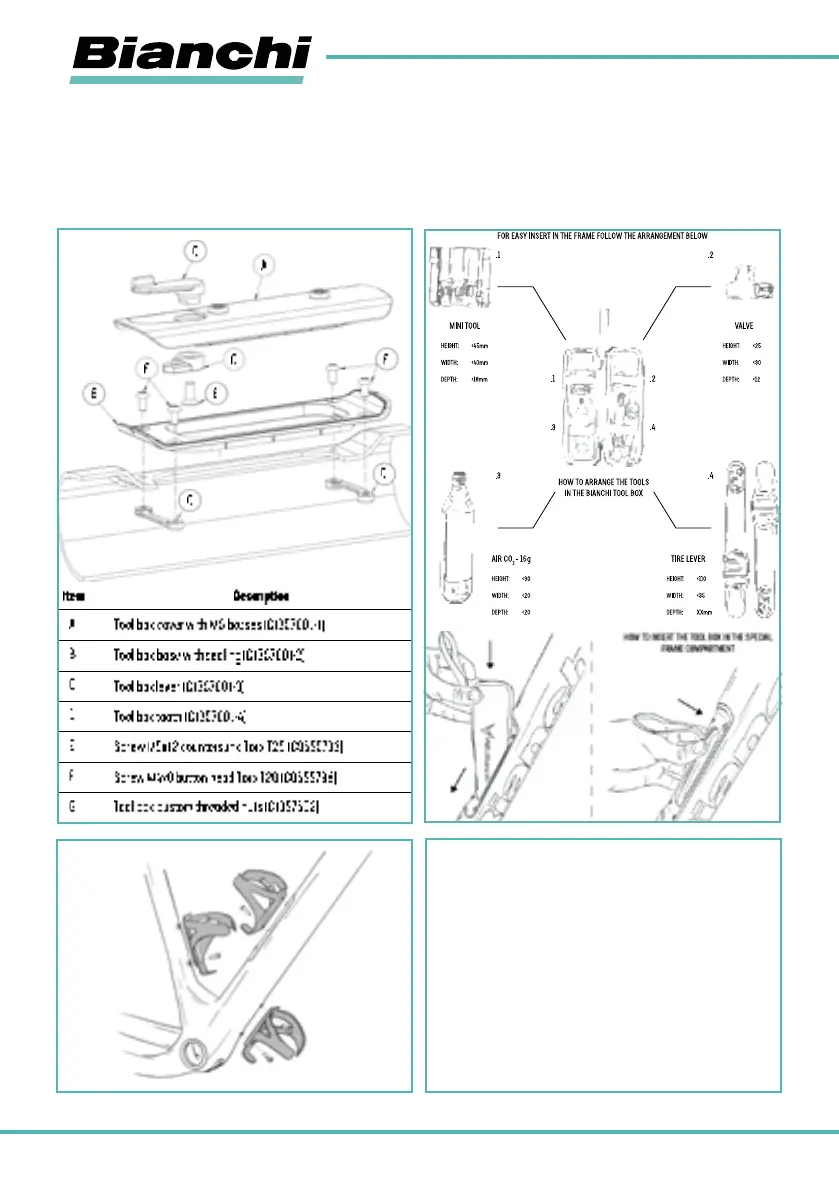 The frame is equipped with an accessory compartment suitable for holding; tyre lever set, air cartridge, multi-tools.