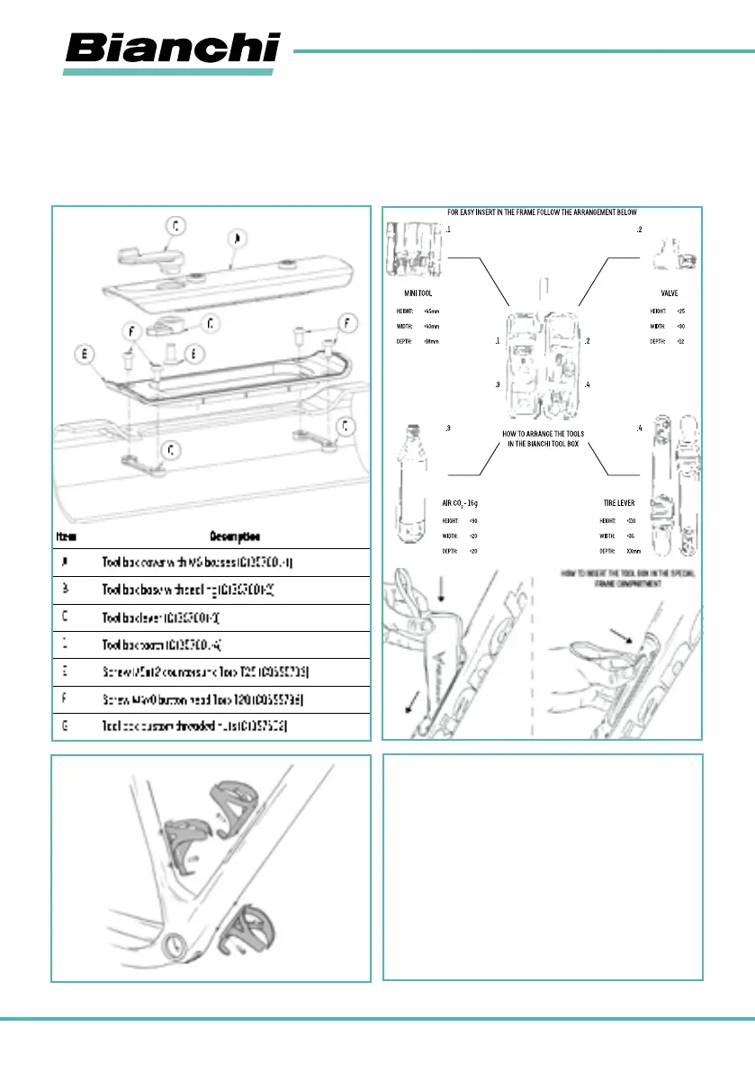 Il telaio è dotato di un vano porta accessori adatto a contenere; set leva gomme, cartuccia aria, multi-tools.