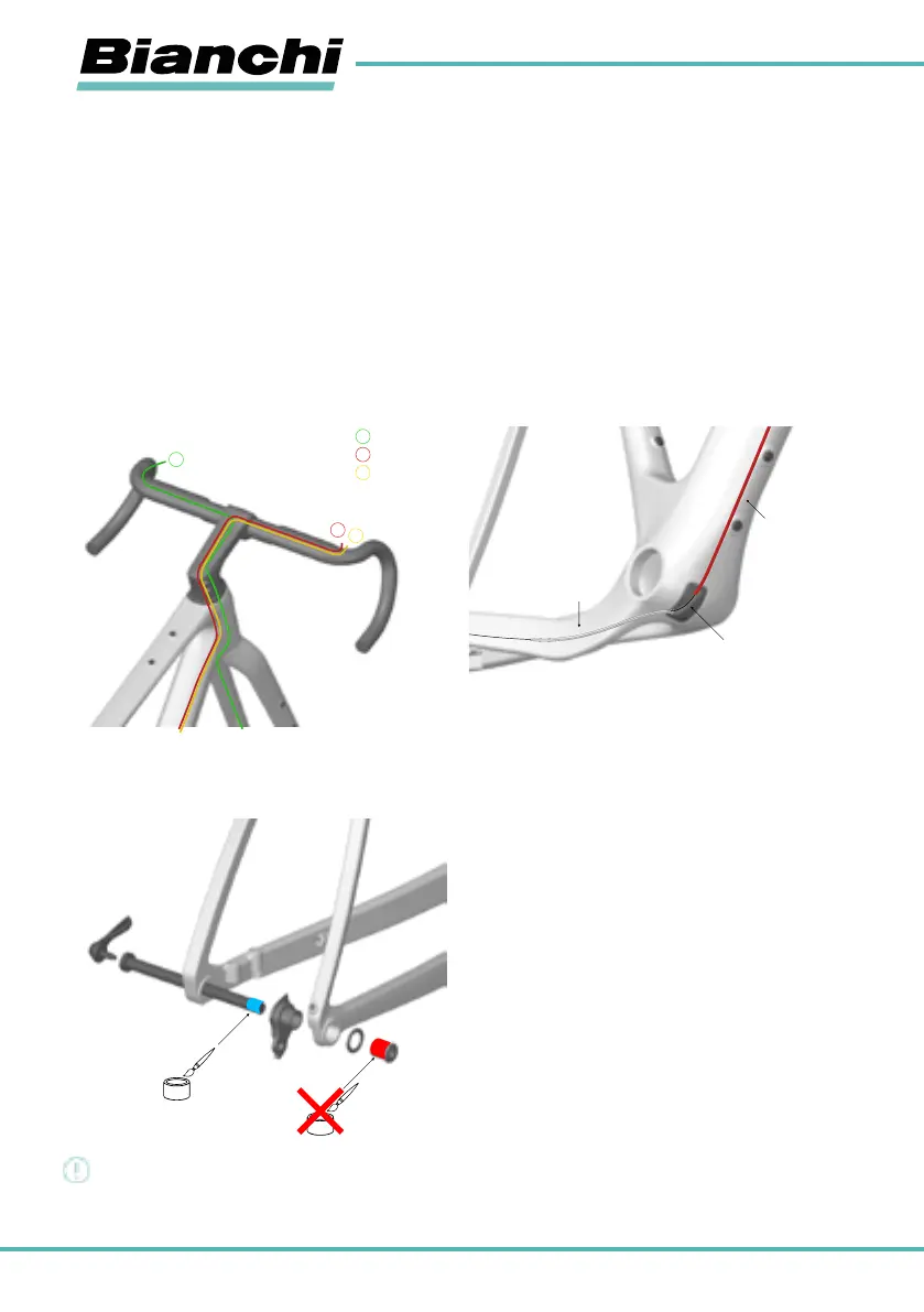Los cables fundas y latiguillos van completamente por el interior del cuadro. Esta operación puede resultar bastante complicada