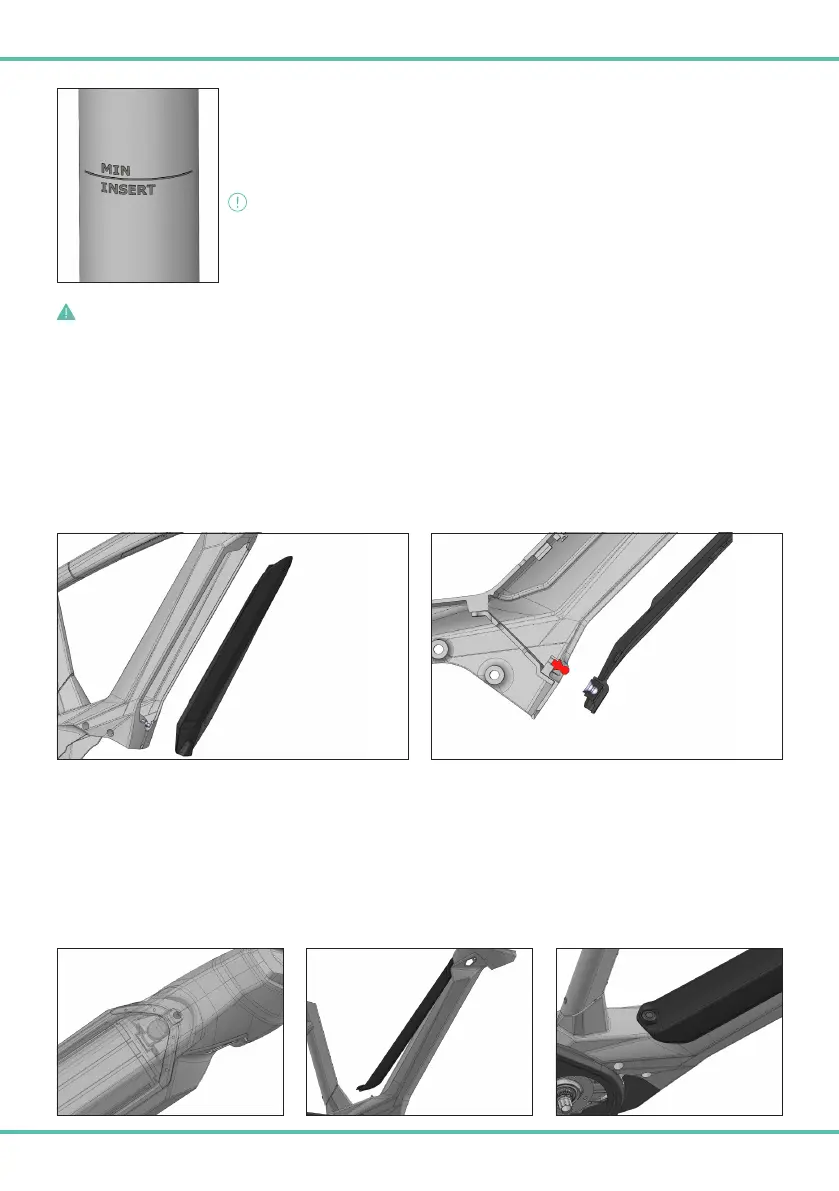 Die Sattelstütze nicht weiter als bis zur an der Sattelstütze markierten Sicherheitslinie herausziehen.