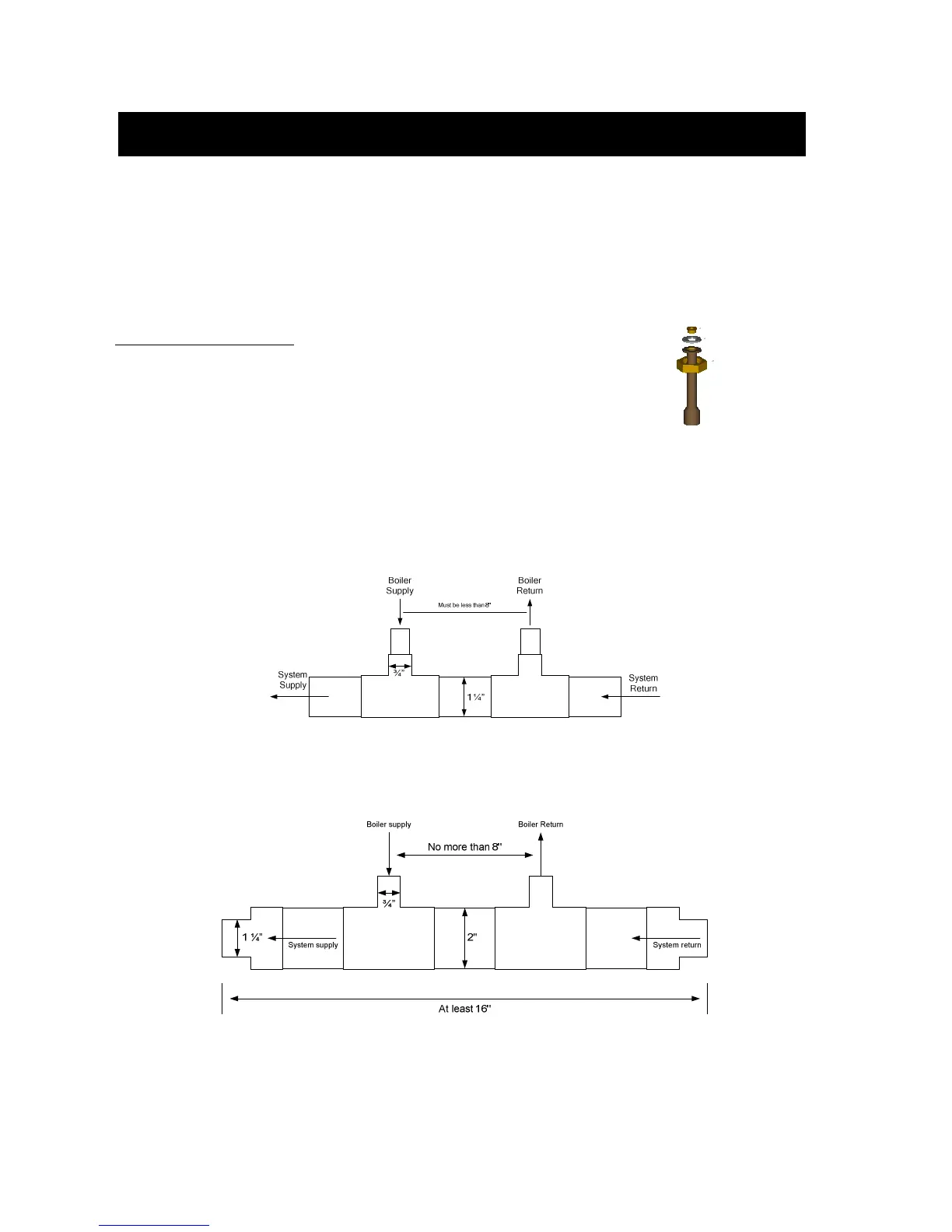 use two closely spaced tees for the boiler supply and return. An example is shown below in