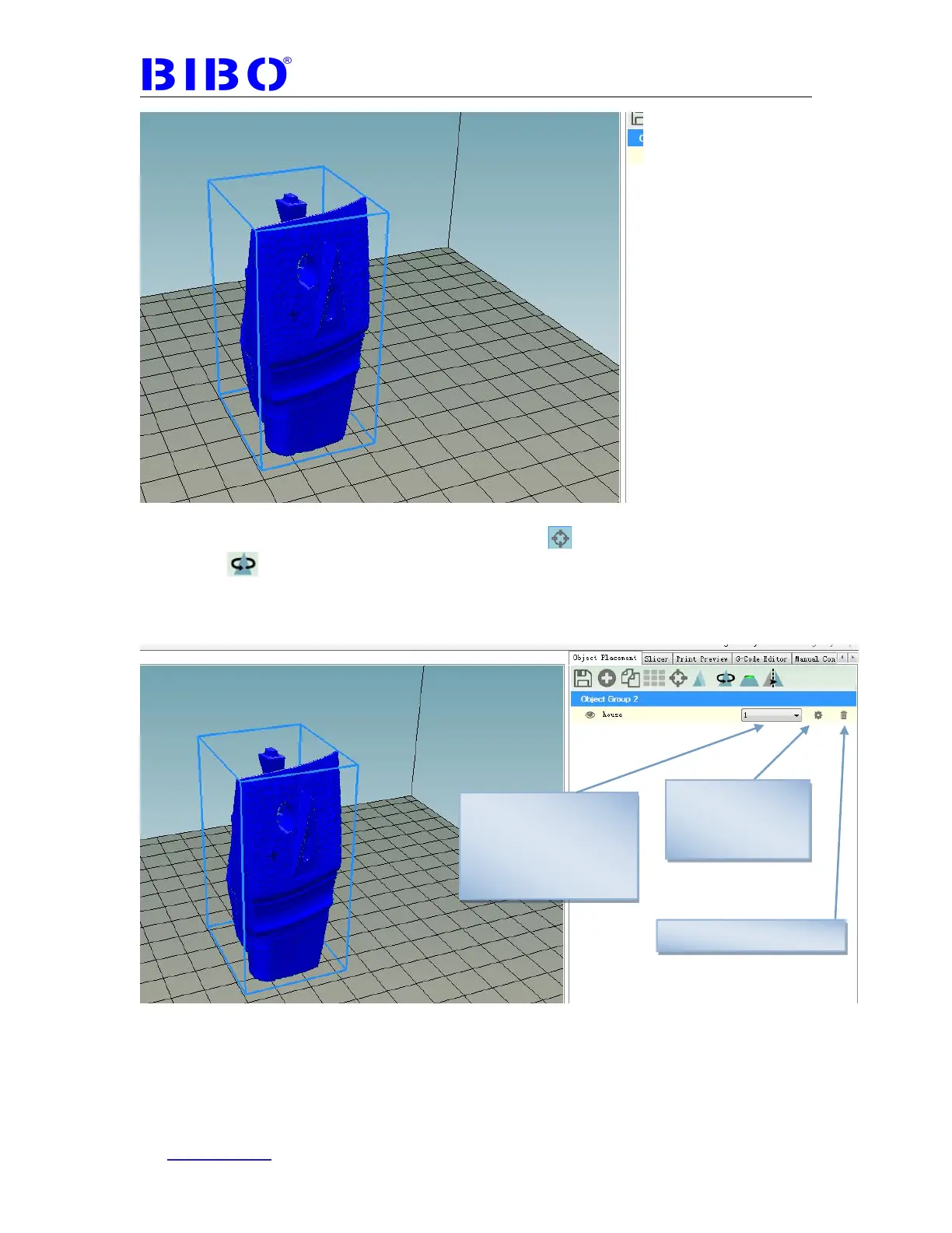 You can center the object on the bed by clicking “ ”icon. You can also rotate the