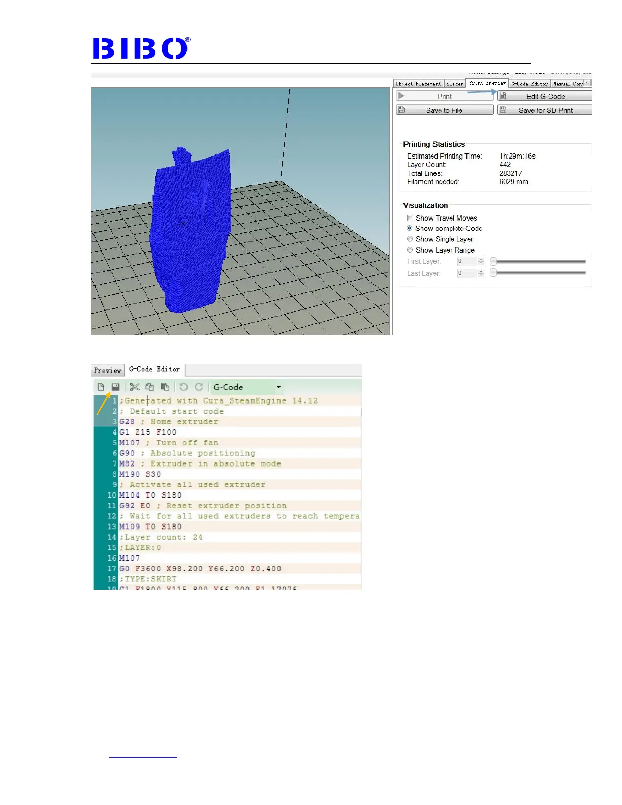 In the G-Code Editor tab, you can edit or save the gcode file on PC or SD card.