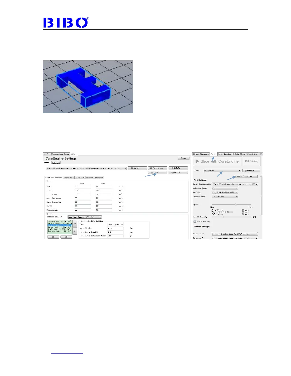 settings.rcp from SD card’s “BIBO maker and touch repetier cura settings”