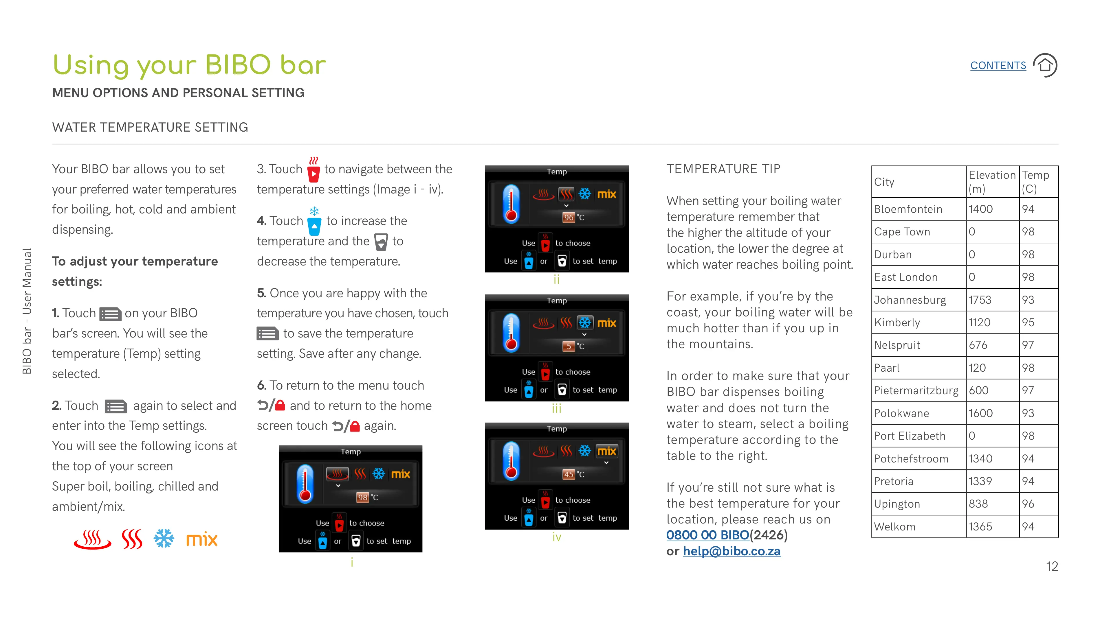 Super boil, boiling, chilled and