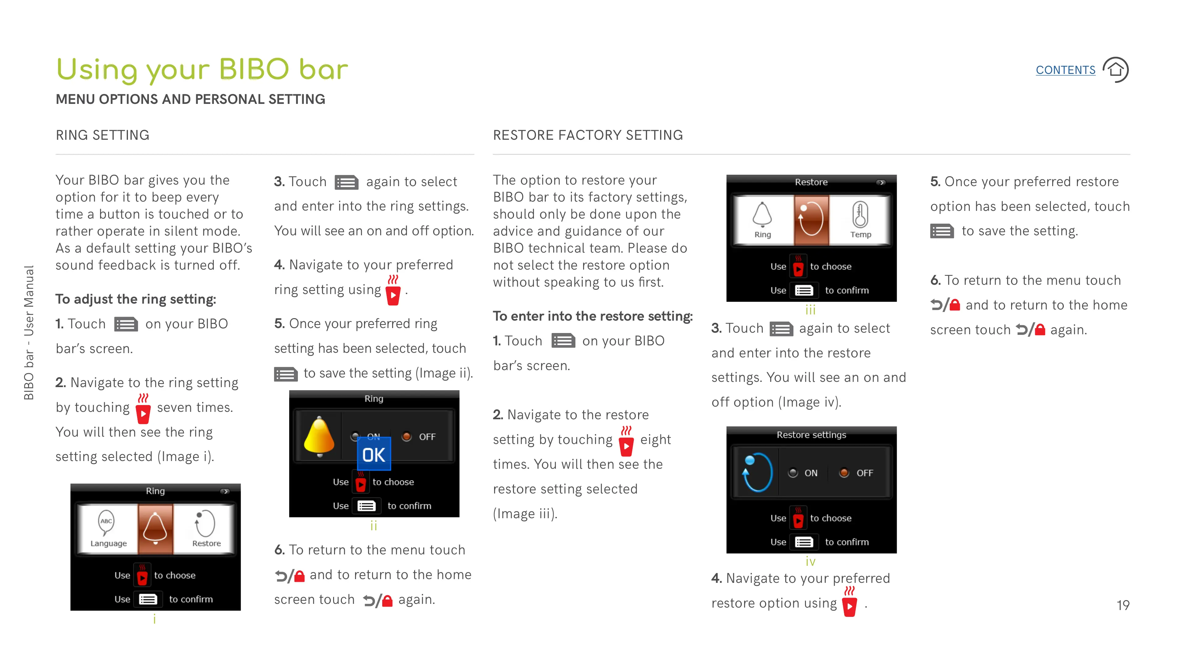 1. Touch on your BIBO