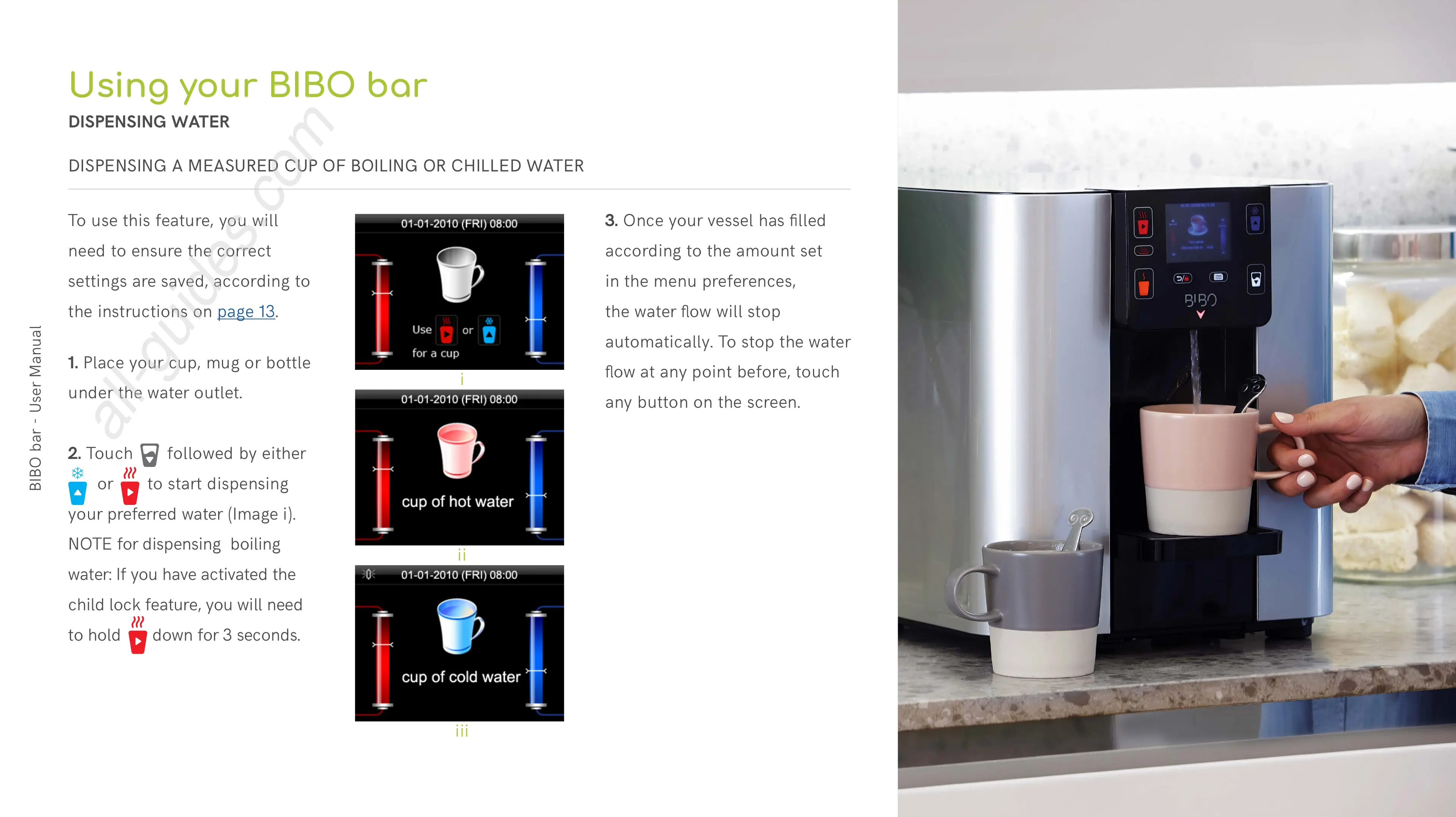 DISPENSING A MEASURED CUP OF BOILING OR CHILLED WATER