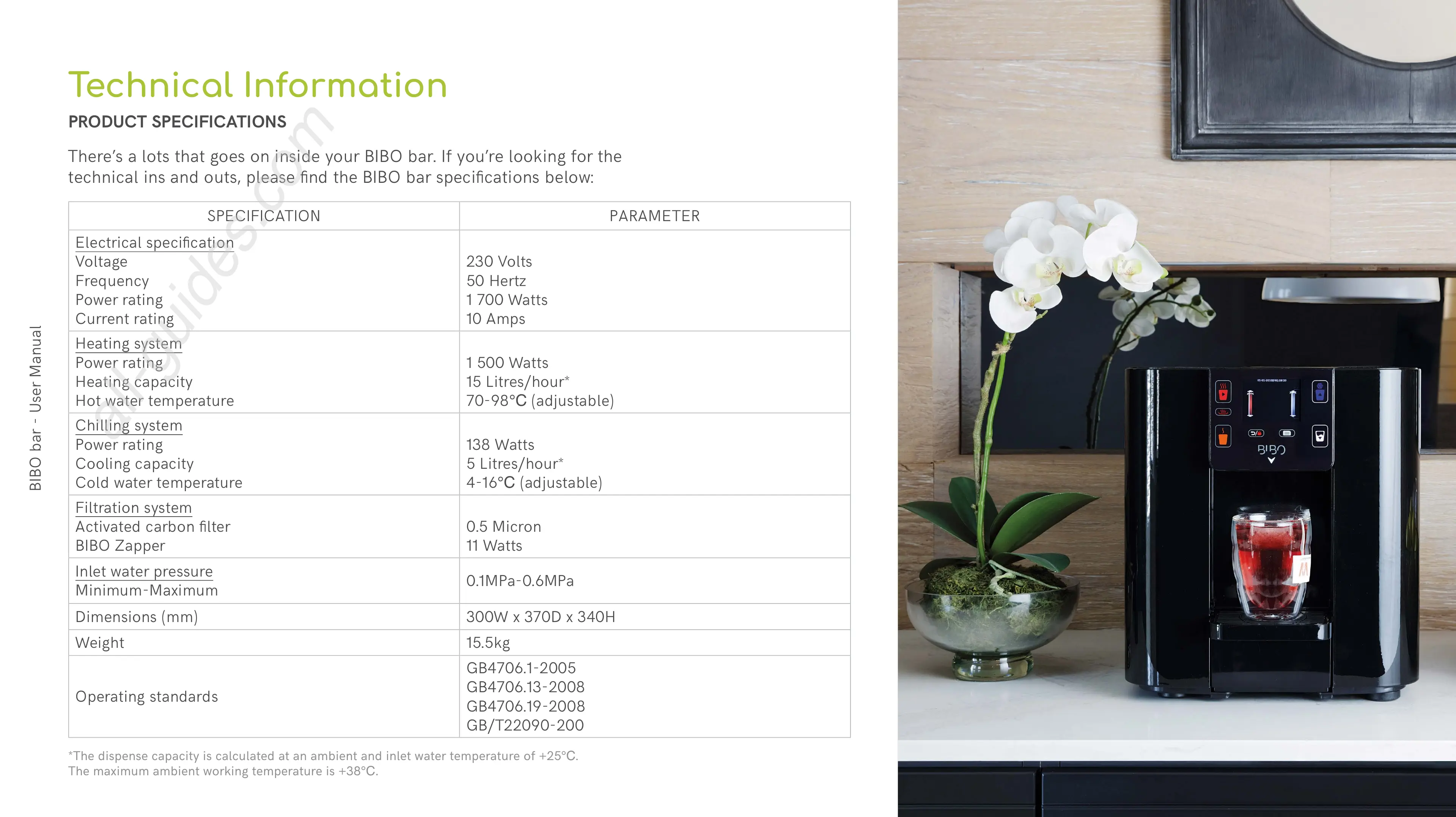 *The dispense capacity is calculated at an ambient and inlet water temperature of +25℃.
