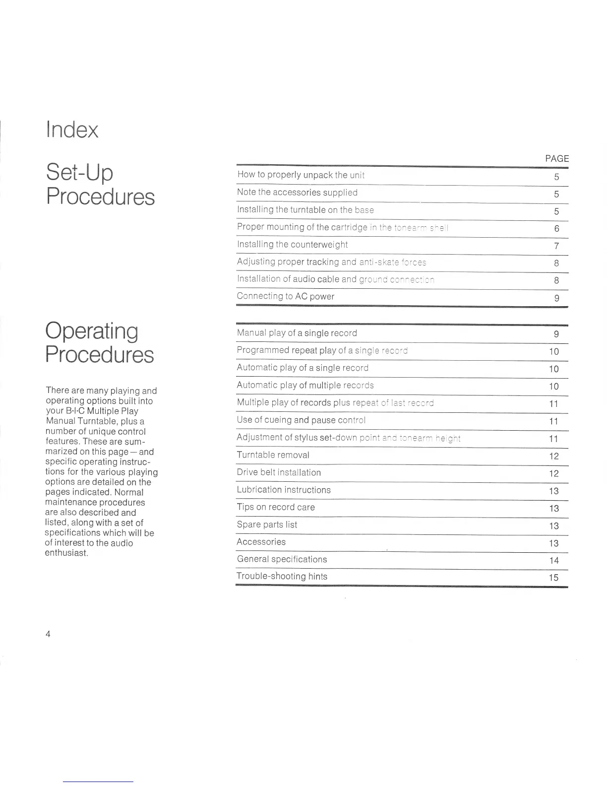 BIC 940 - Set-Up Procedures; Operating Procedures; Maintenance and Record Care; Specifications and Parts Information
