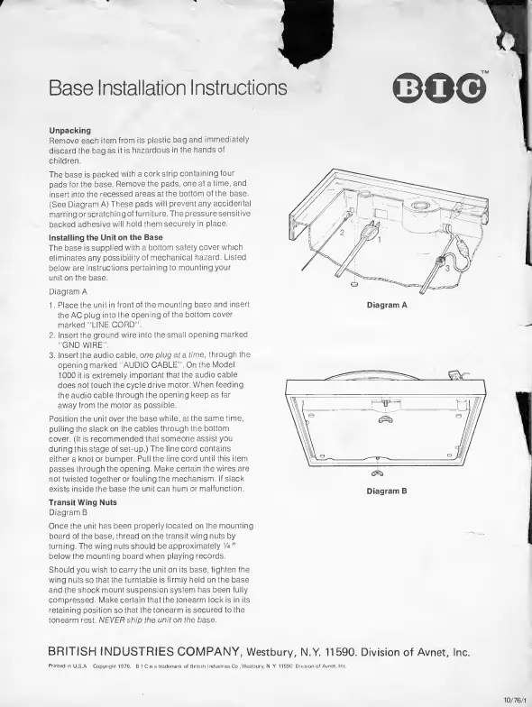 BIC 980 - Base Installation Instructions