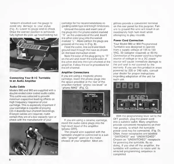 BIC 980 - Connecting to Audio Amplifier