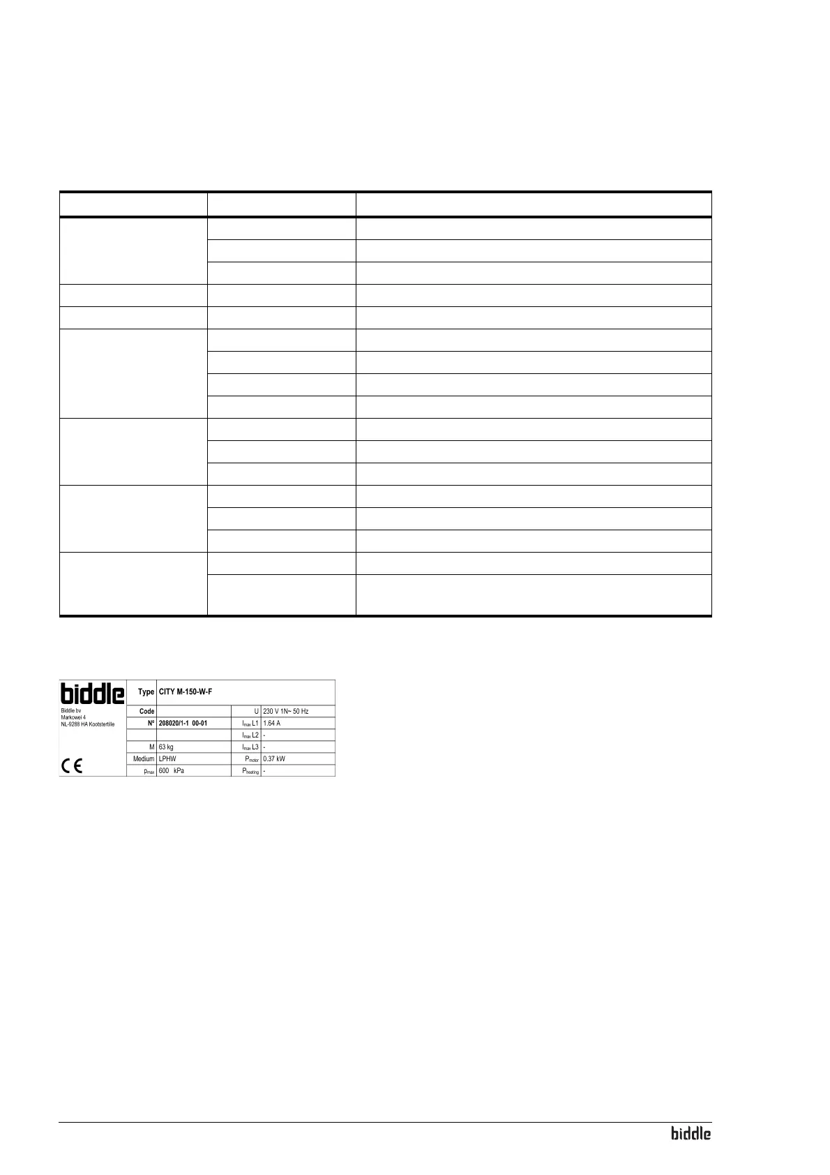 This manual refers to the following data on the type plate: