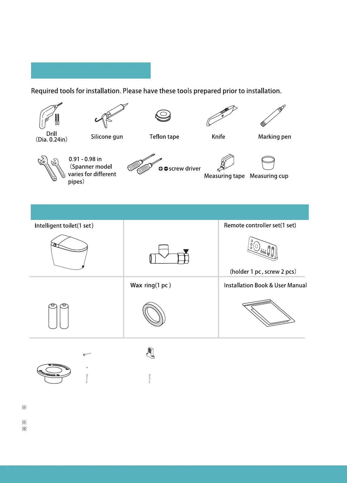 Please confirm all the aforementioned items are inside the package.