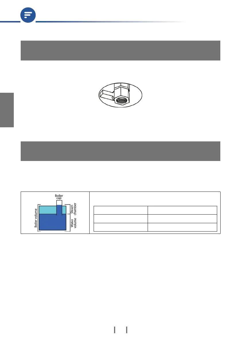 It is normal that the quanty of water inside the boiler is smaller than the boiler volume.