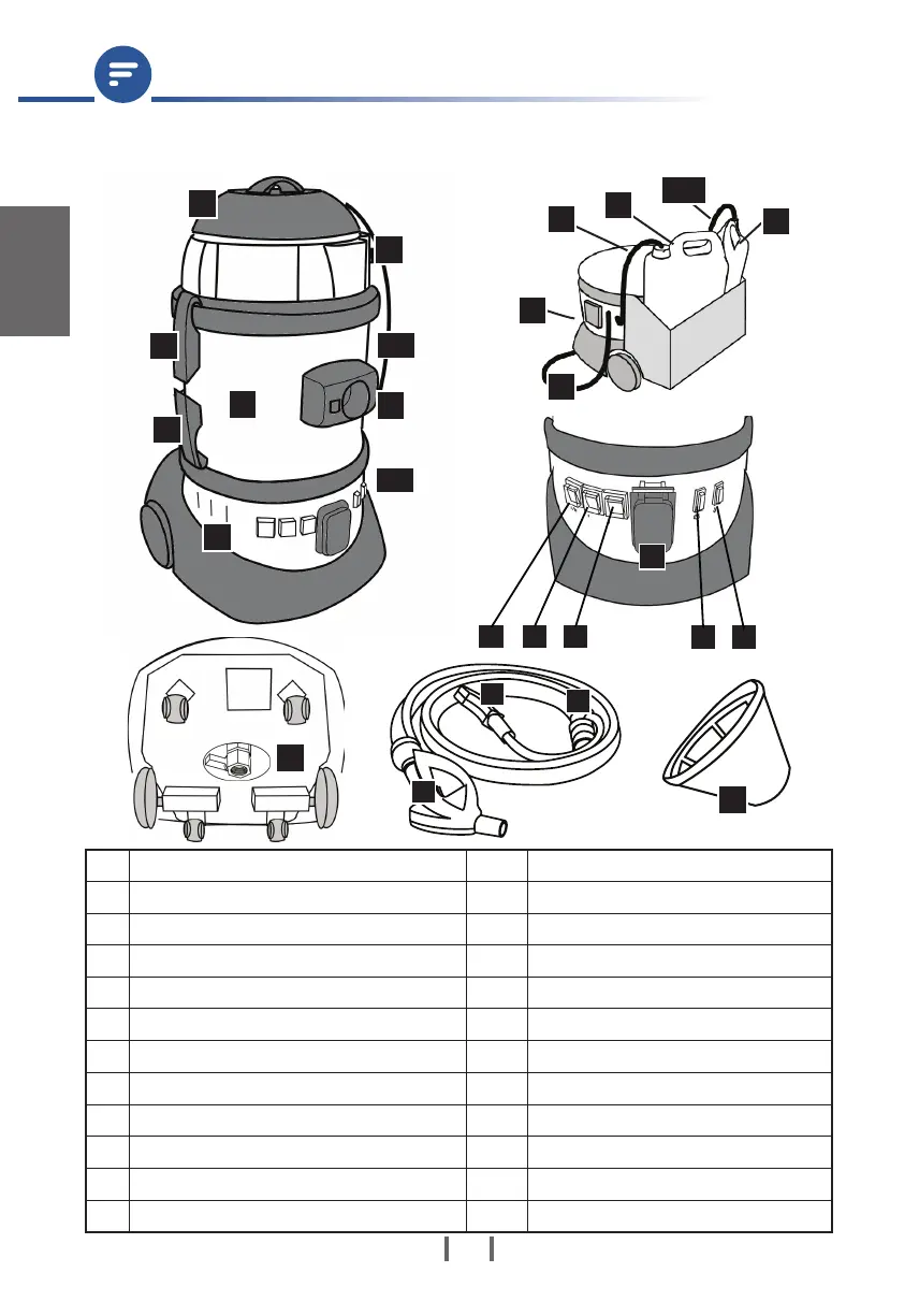 8 Presa elerica per motore aspirante 20 Spia pronto vapore