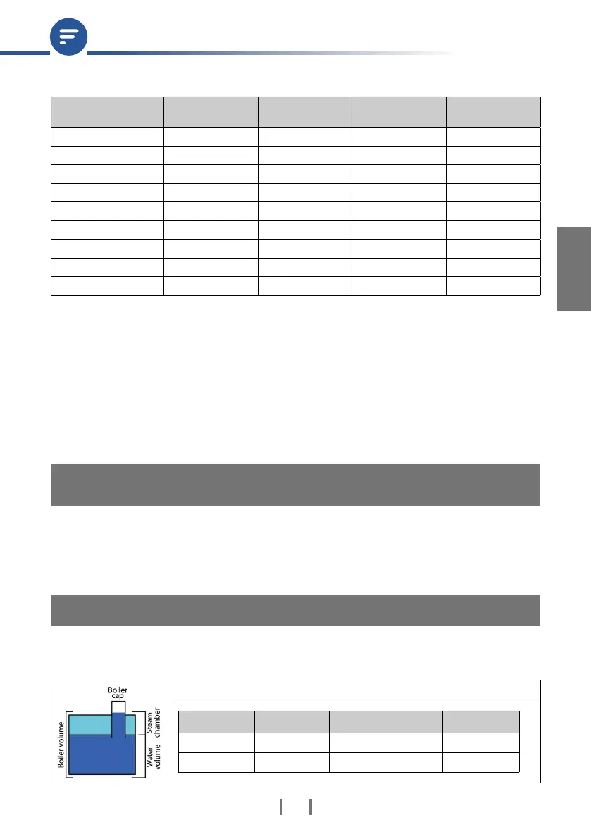 Boiler volume Usable water volume Steam chamber