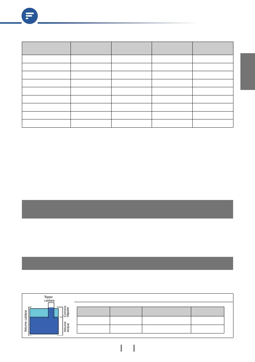 Per “volume caldaia” si intende volume di acqua ulizzabile + camera vapore.