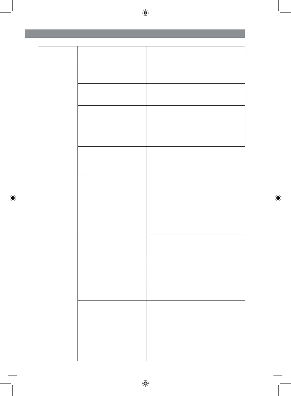 Problem Possible cause Solution