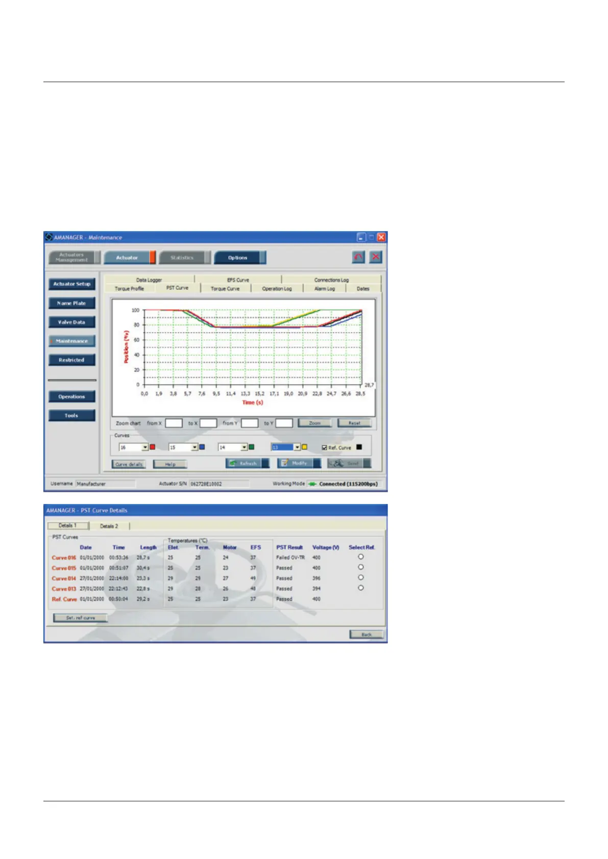 The PST curves cannot be viewed on the local operator interface of the EFS2000. They can only