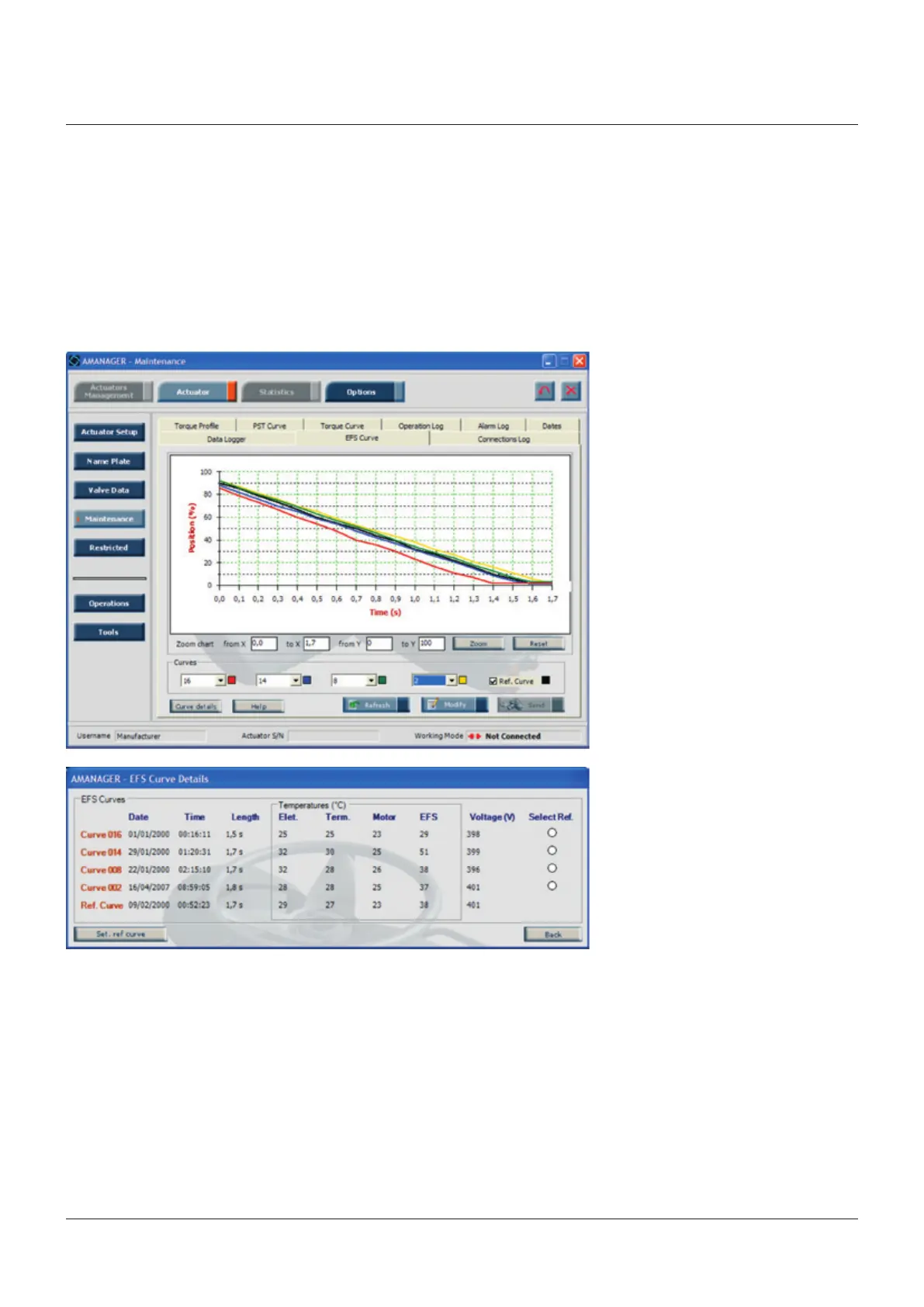 The ESD curves cannot be viewed on the local operator interface of the EFS2000. They can only