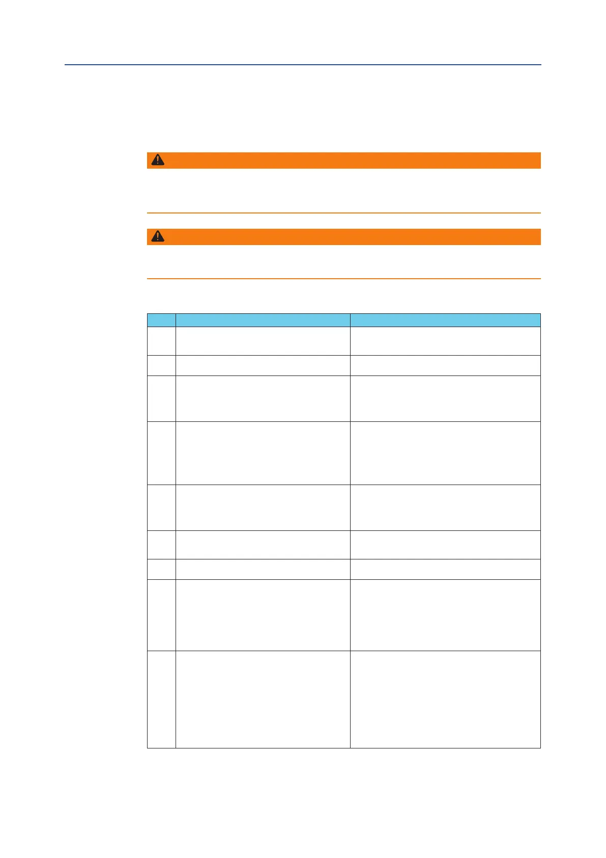 # Detected problem Actions to be performed