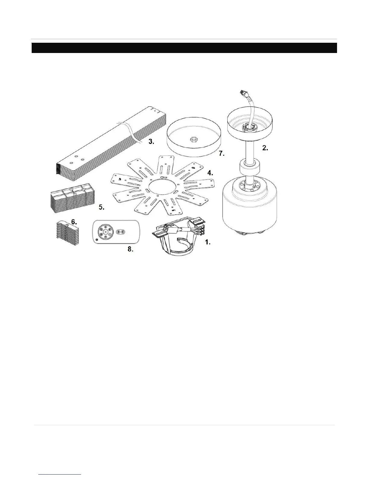 6 Blade decorative kit x 9 14 Screws for remote holder x 2 (not shown)