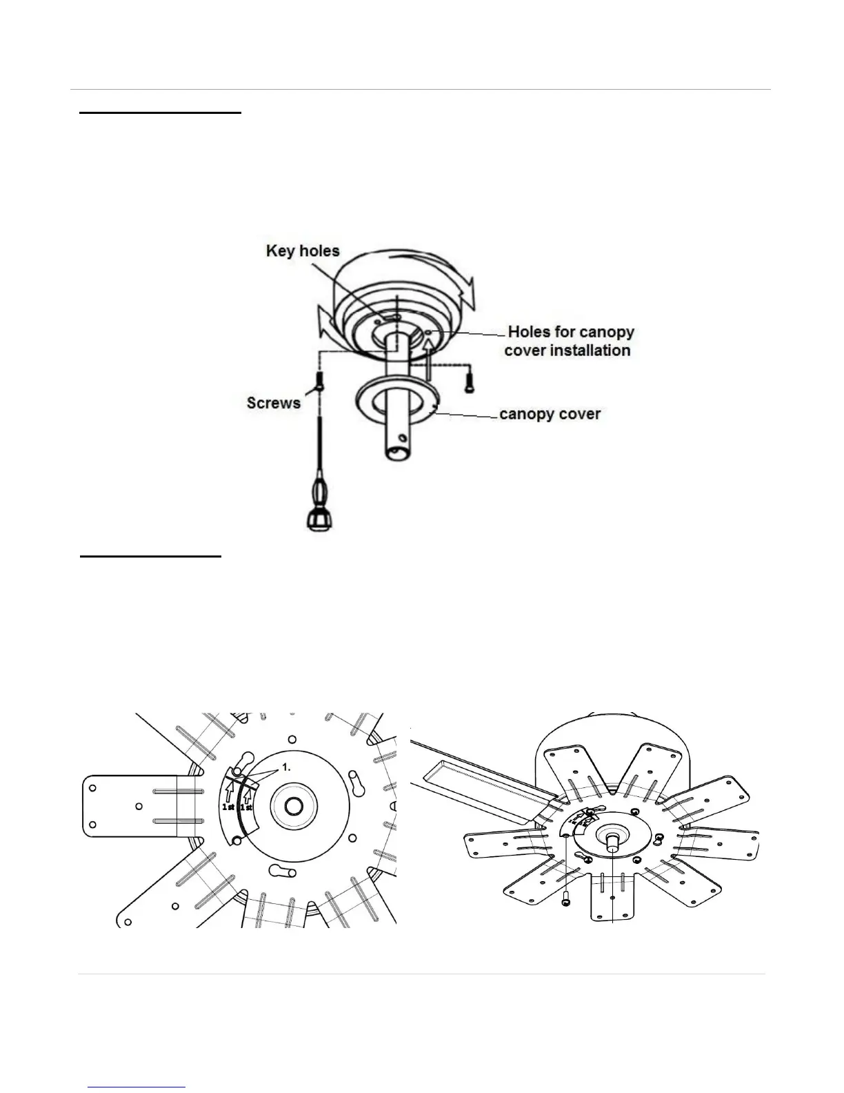 mounting bracket, turn canopy until it locks in place at the narrow section of the key holes, secure it by