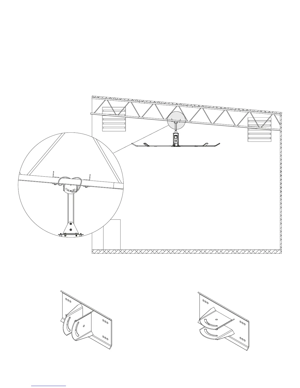 The example below shows a situation in which the 90-Degree Oset mount must be used so that the fan hangs