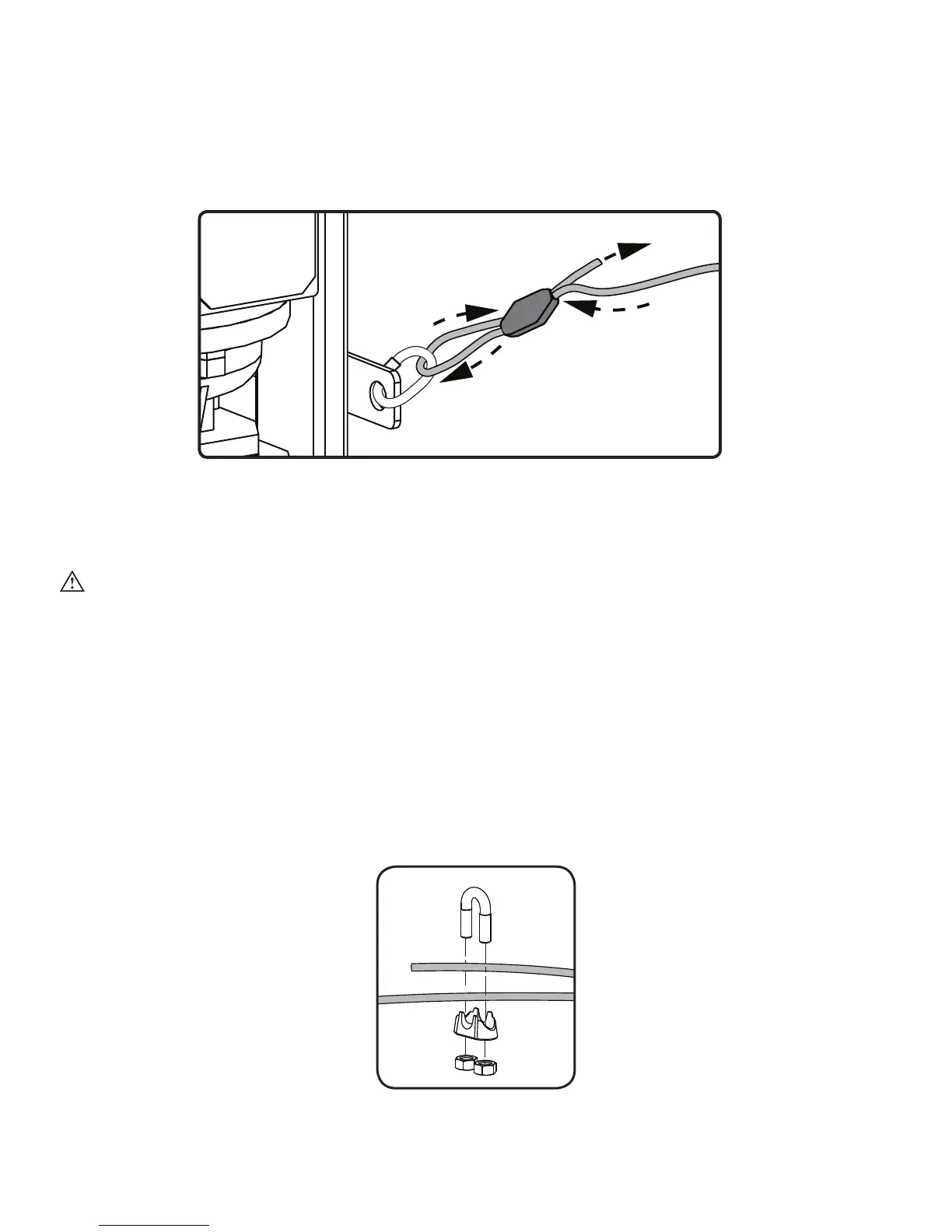 Route the guy wire through the Gripple, the carabiner on the fan, and then back through the Gripple as shown. Do