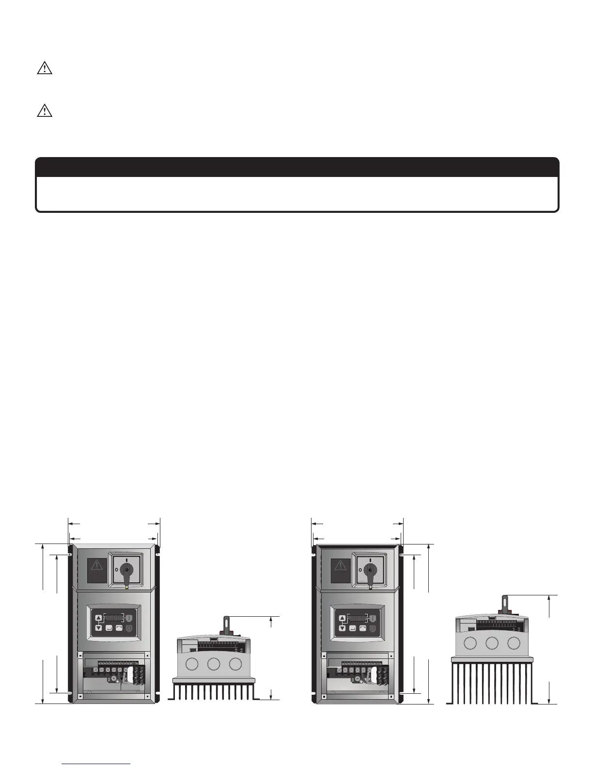Mount the VFD to the wall using a #8–#10 screw. Refer to the diagrams below for mounting hole dimensions.