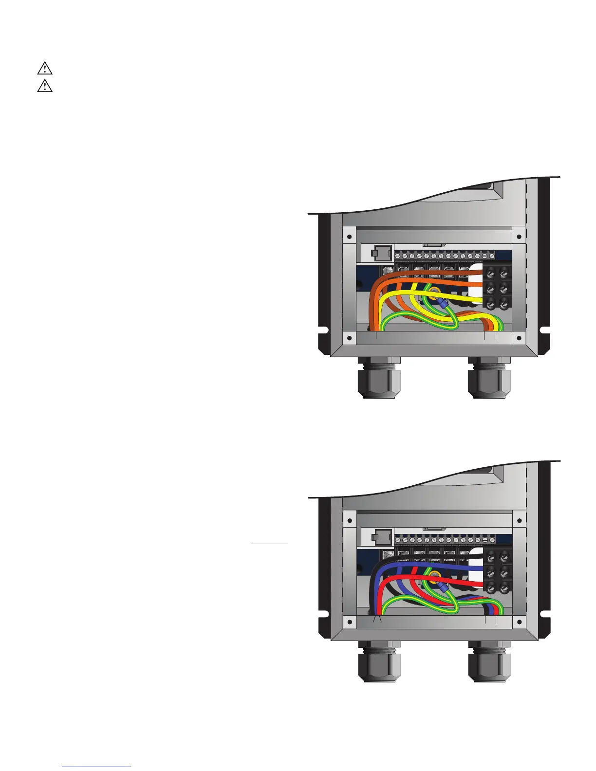 The diagrams below shows wiring options for a 400–480 V and 575–600 V, three-phase VFD. Note: The VFD