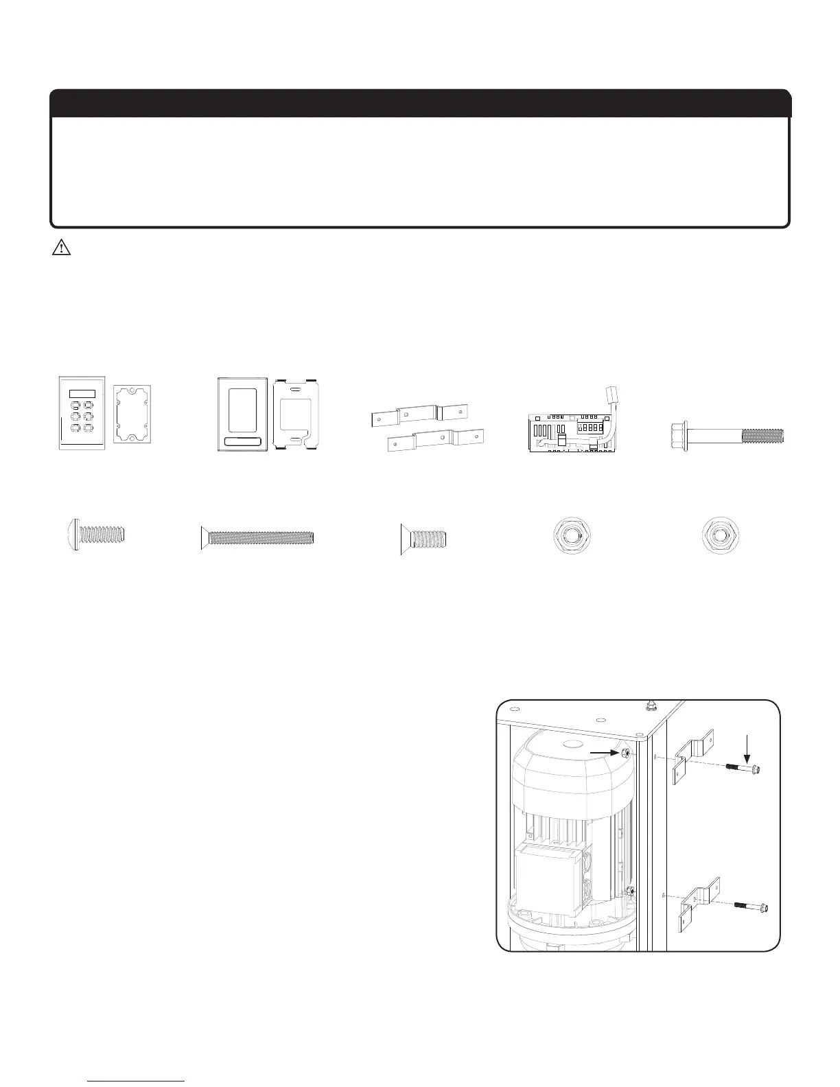 If you are missing any parts or hardware, contact Customer Service. Note: The illustrations below are not to scale.