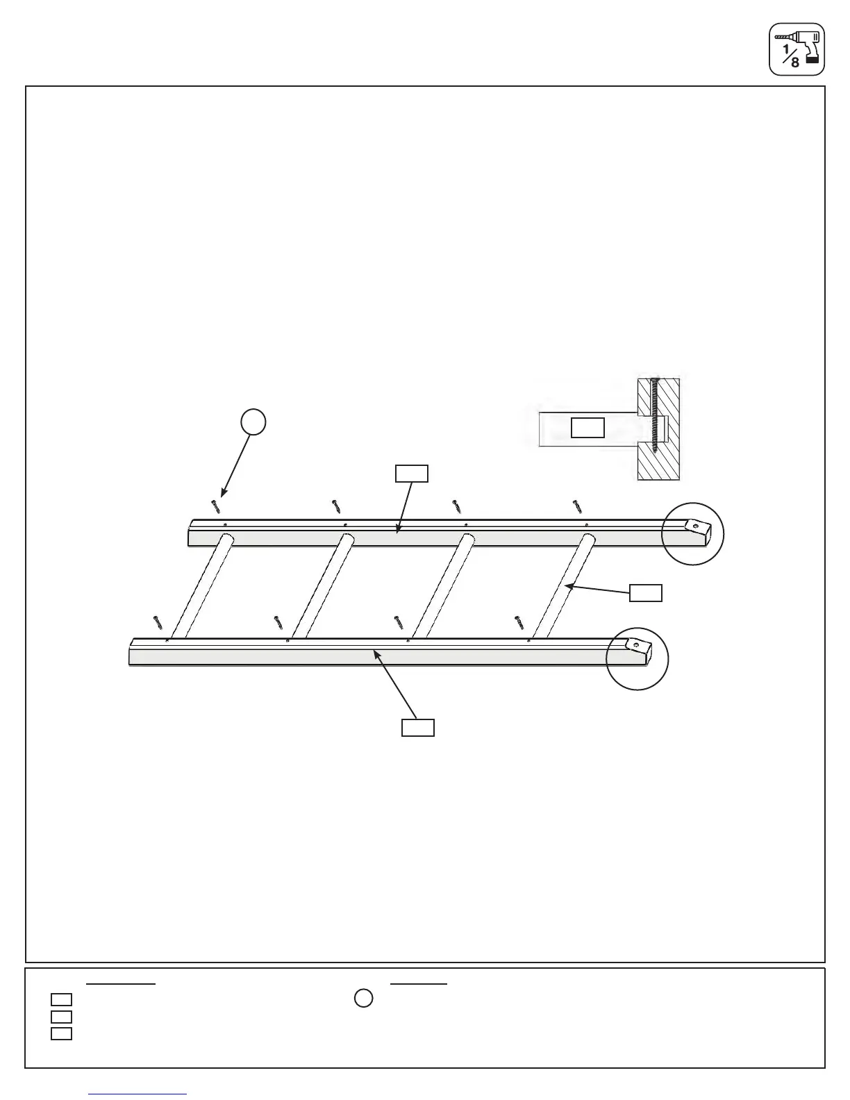 B:Makesureshoulderofdowelisagainsteachrailbeforepre-drillingpilotholes.Drill1/8”pilotholesthroughthe