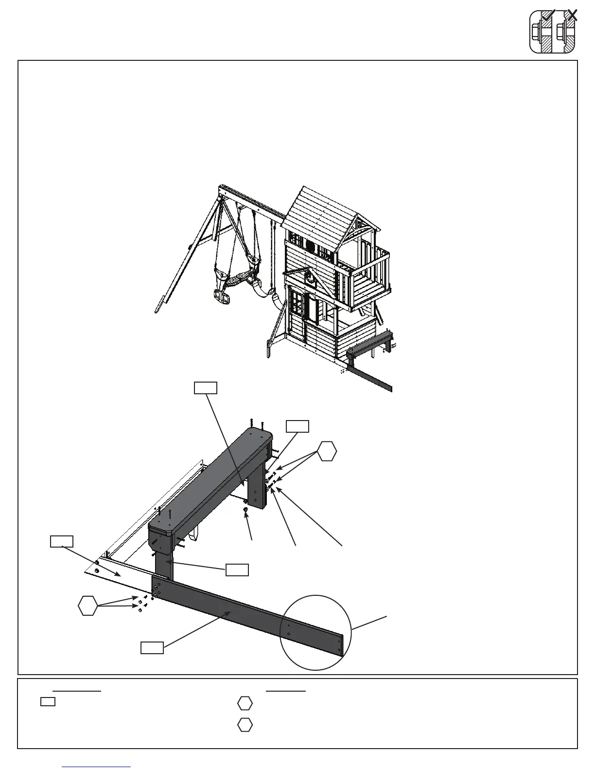 B:Attach(2110)SlideGroundto(2150)FrontBackGroundand(2105)BenchPostwith2(H2)1/4x2”Hex